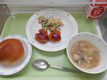 黒砂糖パン 牛乳 豆腐のナゲット シーザーサラダ