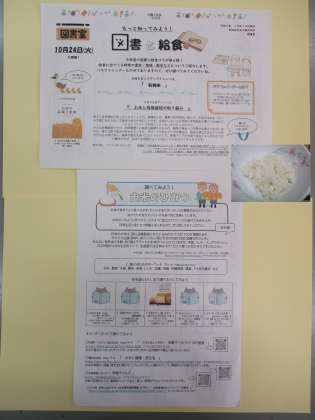図書室とのコラボ給食 公開日 2023/10/24 更新日 2023/10/24 学校日記 今回は「有機米」です。農薬や化学肥料に頼らずして栽培されたお米です。害虫などから守るため様々な工夫がなされています。味わいながら食べると同時にこの機会にお米について調べてみてはどうでしょう。 いいね(0)