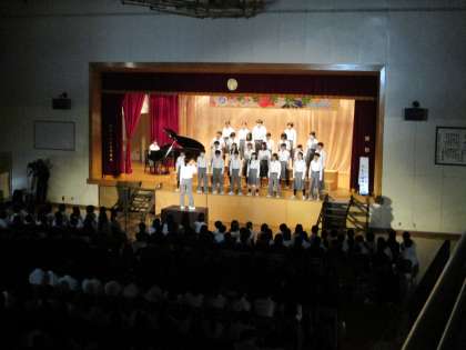 クラス発表が続きます。1年生らしい元気な歌声が響きます。