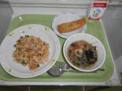 えびチャーハン 牛乳 小松菜のチーズカレー巻き