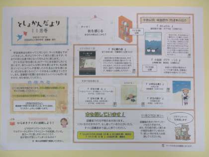 図書館だより より 公開日 2023/11/07 更新日 2023/11/07 学校日記 今回のテーマは深まる秋ということで “秋を感じる”〜あなたの秋はどこから〜文学で秋を感じるのもよいかもしれません。 いいね(0)