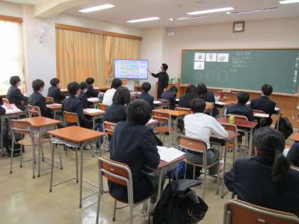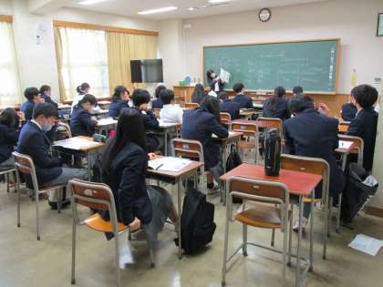2年生は、都立高校の先生に来ていただき、高校の授業を体験しました。