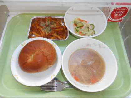 黒砂糖パン 牛乳 ラザニア風グラタン フレンチサラダ