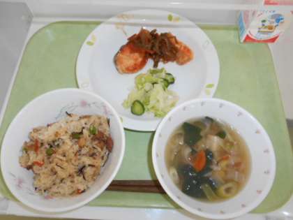 磯おこわ 牛乳 魚の甘酢あんかけ 野菜のひとしお