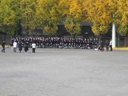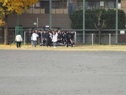 次号のPTA広報誌の中心となる3年生の撮影が晴れた校庭で行われました。