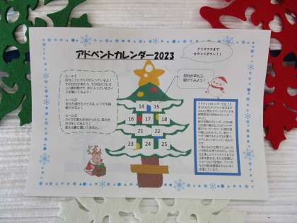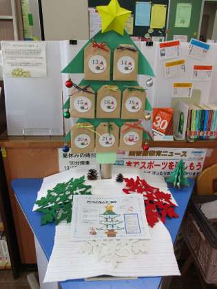 図書室ではクリスマスイベント「クイズアドベントカレンダー」を展示中です。
