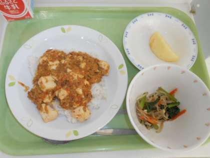 麻婆豆腐丼 牛乳 ナムル くだもの