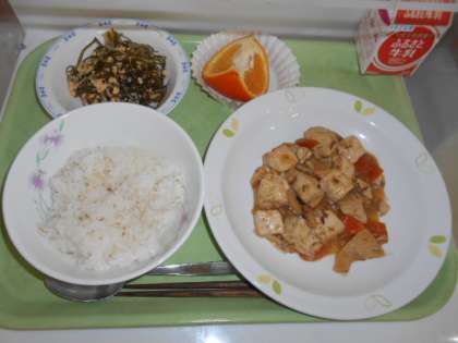 麦ごはん 牛乳 家常豆腐 白菜の中華サラダ