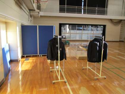 今日明日と新入生を対象とした標準服の試着・採寸を実施しています。
