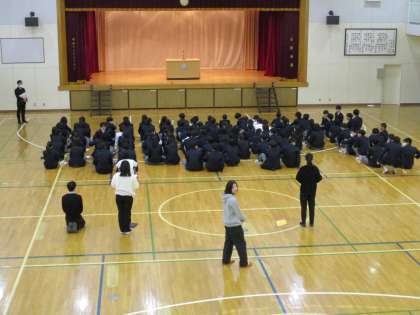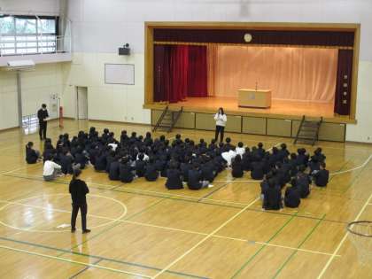 2年生は、明日の鎌倉校外学習本番を控え全体で注意や確認がありました。