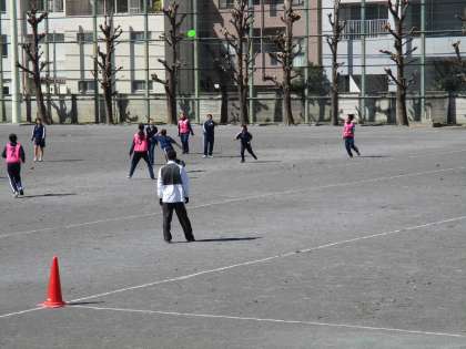フライングディスクを使った競技です。ディスクを投げバスしながらつないでいきます。