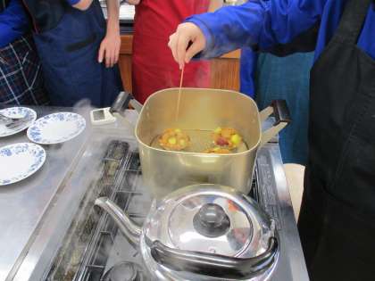 さつまいものせ蒸しパンにアールグレイの紅茶です。黒糖の色も鮮やかでふっくら蒸し上がりました。