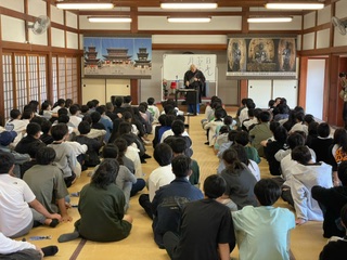 薬師寺のお坊さんの法話を聞きました。爆笑に包まれました。でも最後は、楽しくするのは自分の心しだいであると、みんな納得していました。