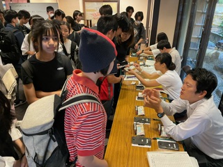 本日は一日班行動の日です。出発前に必要なものを担任の先生からもらって出発します。