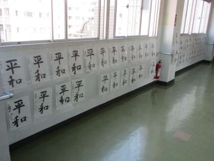 2年生の廊下には国語授業で書いた習字が掲示してあります。