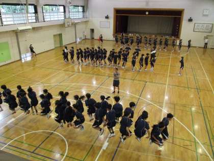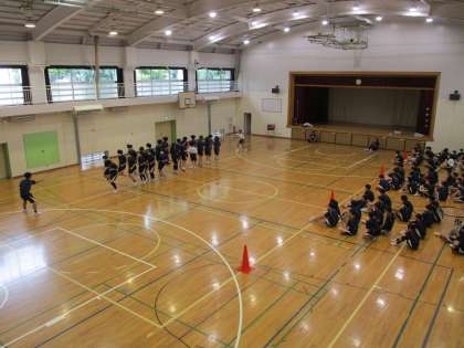 雨が降りグラウンドが使えず急遽体育館練習となりました。4時間目は雨があがっており2年生は外で練習ができました。