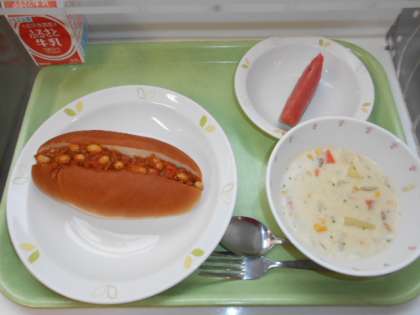 チリコンカンドッグ 牛乳 コーンチャウダー