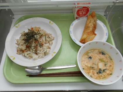 梅じゃこチャーハン 牛乳 春巻き 中華風コーンスープ