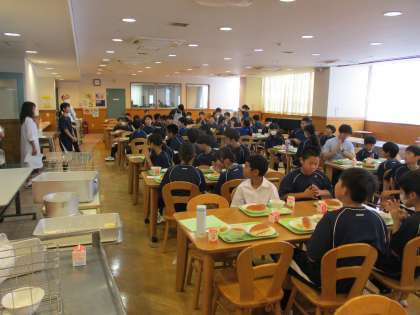 ランチルームでの給食は教室とはまた違った雰囲気での食事となりました。