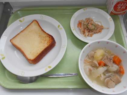 ミルクトースト 牛乳 ポトフ もやしとツナのサラダ