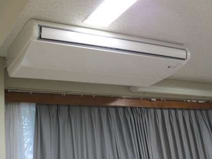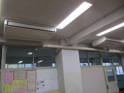 夏休み中にエアコン改修工事が行われ全教室新しいものになりました。