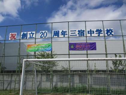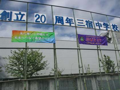 西側フェンスにも記念パネルを設置。併せて横断幕も掲示しました。