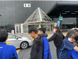 海老名サービスエリアでトイレ休憩です。まだまだ元気な皆さんです。16時30分前後に学校到着予定です。