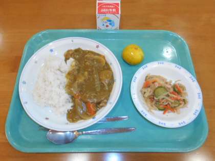 チキンカレーライス 牛乳 こんにゃくサラダ