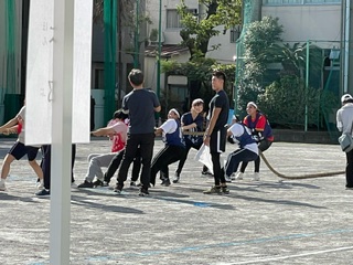 夜間学級連合運動会1 公開日 2024/10/12 更新日 2024/10/12 学校日記 本日は夜間学級の運動会で、荒川第九中学校に来ています。紅白に別れて綱引きです。 学校対抗台風の目では、第三位になりました。 いいね(0)