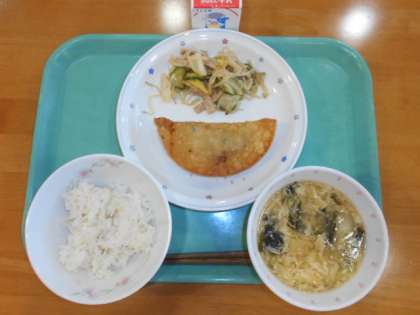 麦ごはん 牛乳 ジャンボぎょうざ 中華風サラダ