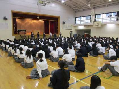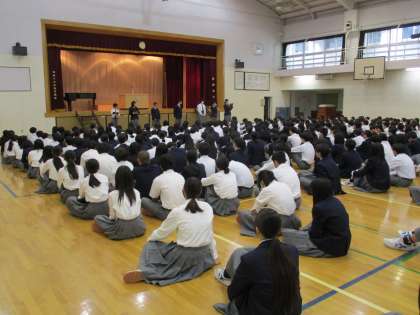 全校朝会の後半には生徒会新役員、後期専門委員長よりあいさつがありました。