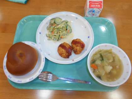 黒砂糖パン 牛乳 豆腐のナゲット シーザーサラダ