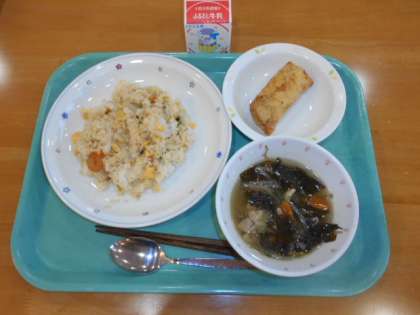 えびチャーハン 牛乳 小松菜のチーズカレー春巻き