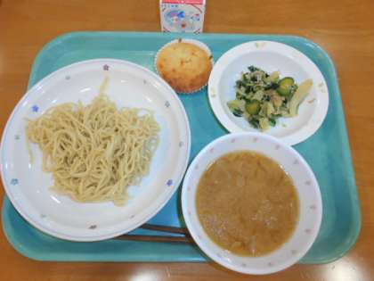 つけ麺ラーメン 牛乳 じゃこと水菜のサラダ