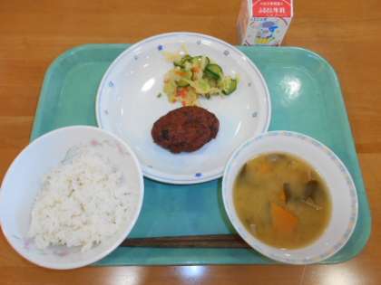 麦ごはん 牛乳 手作りさつまあげ 即席漬