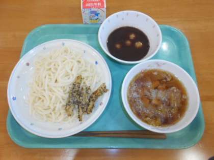 ちゃんこつけ麺 牛乳 わかさぎのごま天 白玉しるこ