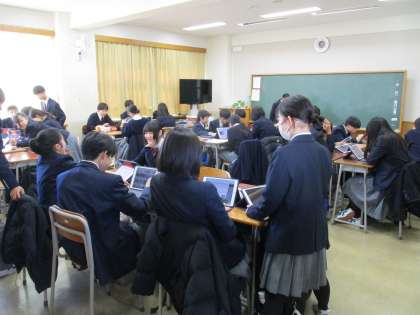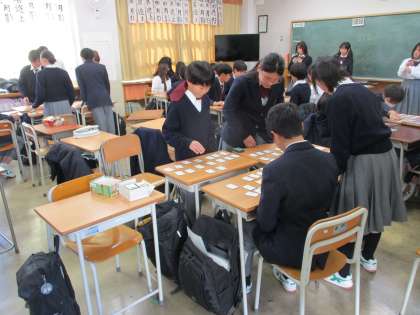1年生は百人一首の予選、2年生は校外学習に向けてコース決め、3年はクラスで様々取り組んでいました。