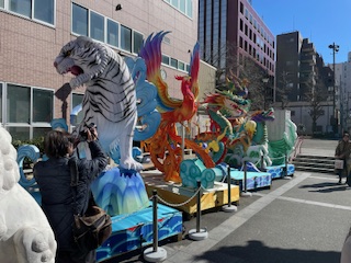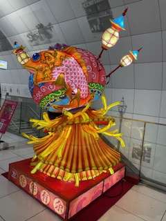 駅の中にも公園にもたくさんの春節飾りがありました。迫力があり素敵です。