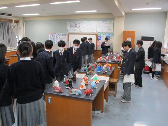 午前中は生徒が他学年の作品も含めておたがいに見学をします。午後は保護者見学となります。