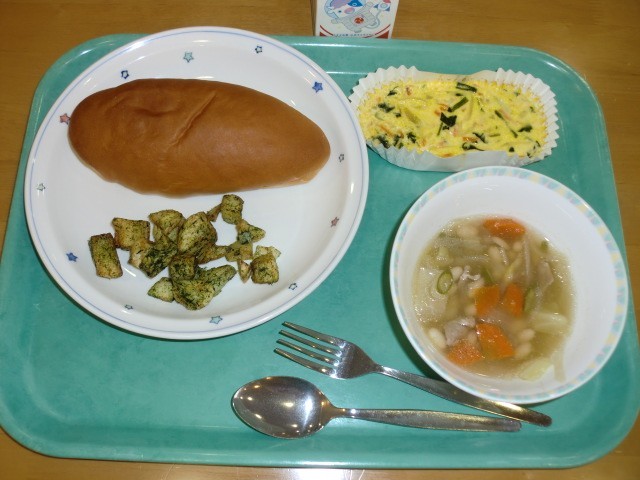 ミルクパン 牛乳 フライドポテト キッシュフロレンティーヌ 白いんげんの田舎風スープ