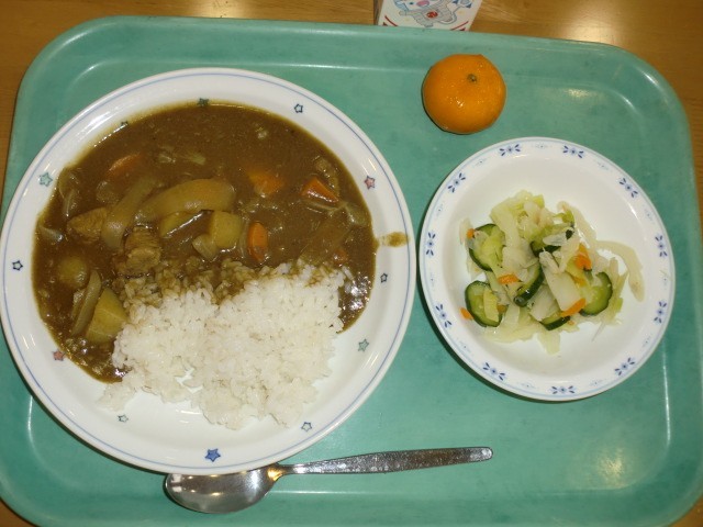 カレーライス 牛乳 野菜の甘酢かけ くだもの