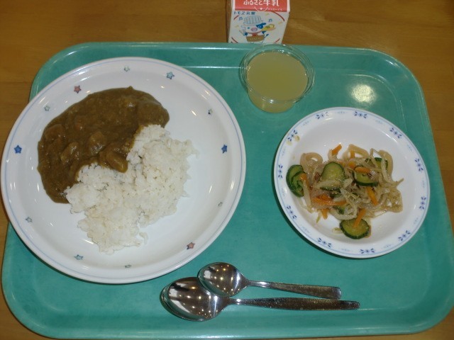 カレーライス 牛乳 こんにゃくサラダ りんごゼリー