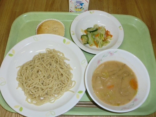 つけ麺風ラーメン 牛乳 野菜の甘酢かけ チーズケーキ