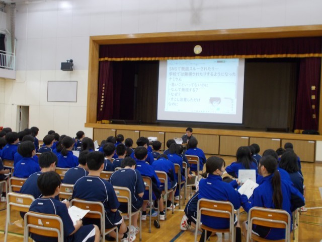 講師をおよびして1年生を対象にネットリテラシー醸成講座が行われました。ネットの便利さと危険性について、学習しました。