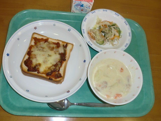 ピザトースト 牛乳 クリームシチュー フレンチサラダ