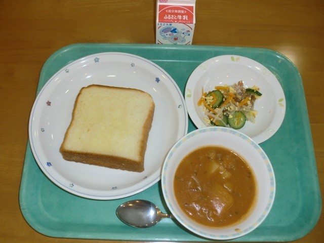 ミルクトースト 牛乳 トマトシチュー 炒り卵サラダ