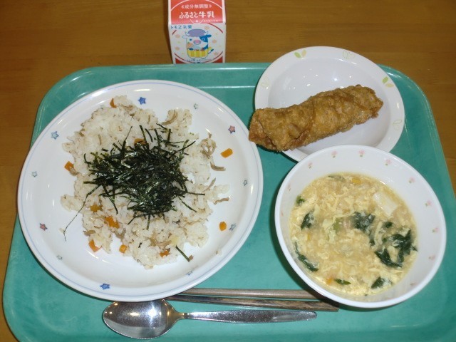 梅じゃこチャーハン 牛乳 春巻き 中華風コーンスープ