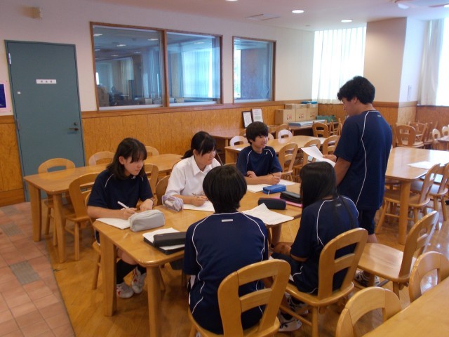 実際にノートを見せて説明したりテストに向けての取り組み方なども3年生からお話ししていました。1年生も、積極的に3年生に質問していました。