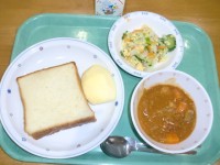 ●本日の献立●カレーライス 牛乳 ベーコンと水菜のサラダ くだもの●主な給食食材...