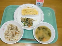 ●本日の献立●豚肉とごぼうのごはん 牛乳 擬製豆腐 野菜のごまあえ みそ汁●主な...